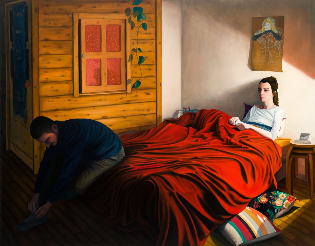 La peinture de Dorian Cohen s’attache à construire le récit intime et social de différentes trajectoires de vies urbaines contemporaines, dans un registre réaliste. L’artiste travaille par séquences narratives qui s’enchevêtrent et s’entrelacent et construisent au fil des créations une généalogie naturaliste. Ainsi, les représentations silencieuses et intimes de personnages sont nombreuses dans le travail du peintre, et cohabitent avec une autre expression formelle, plus ludique, chère à l’artiste : le paysage urbain, qu’il cultive depuis ses débuts, et sur lequel il porte un regard enchanteur.