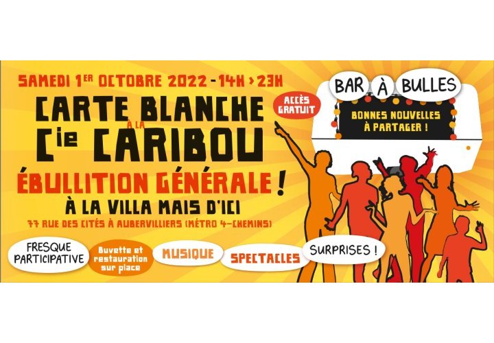 Cet événement s’inscrit dans le cadre d’une carte blanche offerte à la Villa Mais d’Ici à la compagnie Caribou autour de sa dernière création spectaculaire, Le Bar à bulles et ses bonnes nouvelles, soutenue en 2021 par la Villa Mais d’Ici et par la DRAC Ile-de-France.