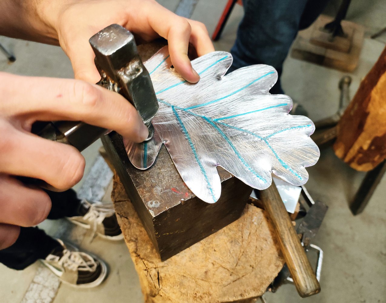 Technique ancestrale du battage de la feuille de métal, la dinanderie consiste à marteler une fine tôle. Pour cet atelier, Marc Guillermin invite à découper, ponçer et marteler, pour réaliser des masques, figurines et sculptures lumineuses.