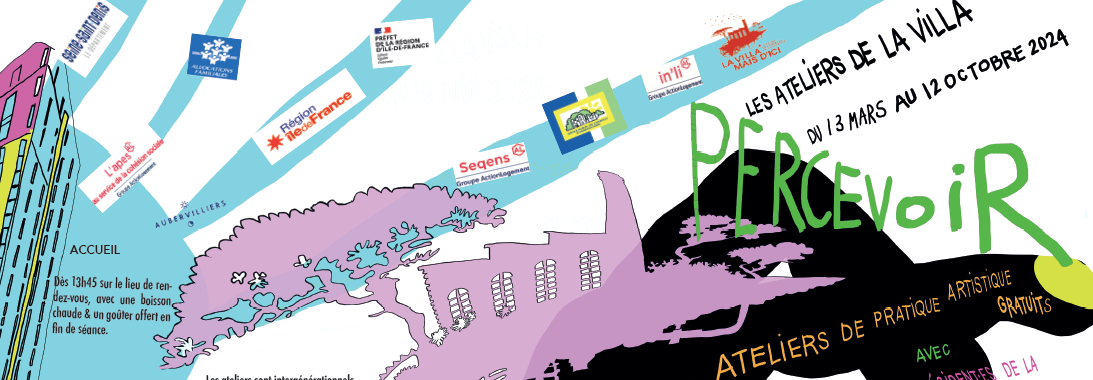 Du 13 mars au 12 octobre 2024, une vingtaine d’artistes résident·es de la Villa Mais d’Ici ont proposé des ateliers de pratiques et découvertes artistiques en tout genre aux habitant·es d’Aubervilliers, en s’inspirant des multiples facettes de la perception ! Tout en s’initiant à différentes techniques et expressions artistiques, les participant·es des ateliers ont pu prendre part à la réalisation d’une œuvre collective visuelle et vivante avec les artistes de la Villa, dévoilée le 12 octobre 2024 !